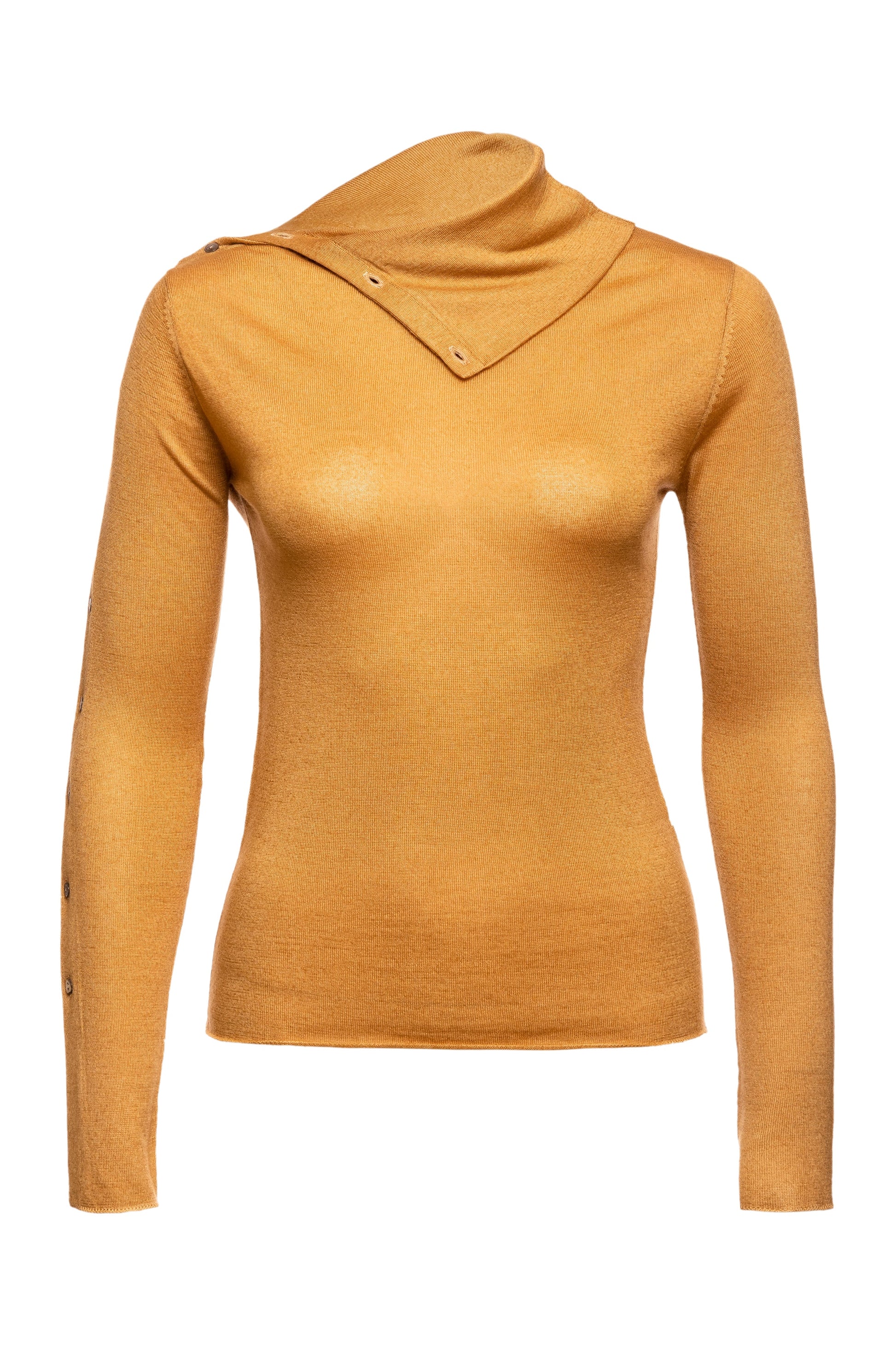 Pearl Body Fitted Flap Turtle Neck Textured Top