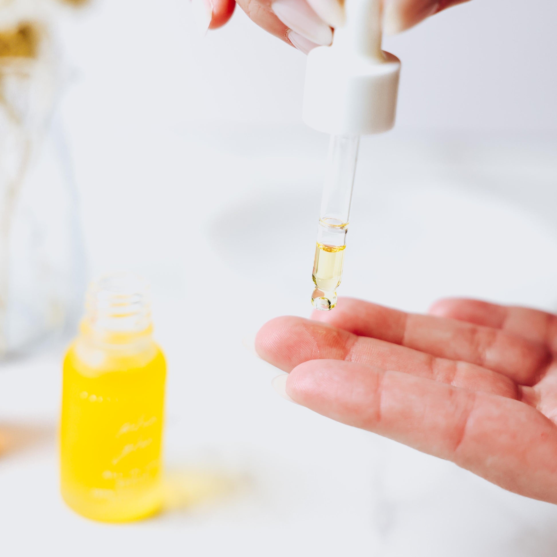1. Apply one or two drops to your palm and evenly apply to the entire face including under your eyes.