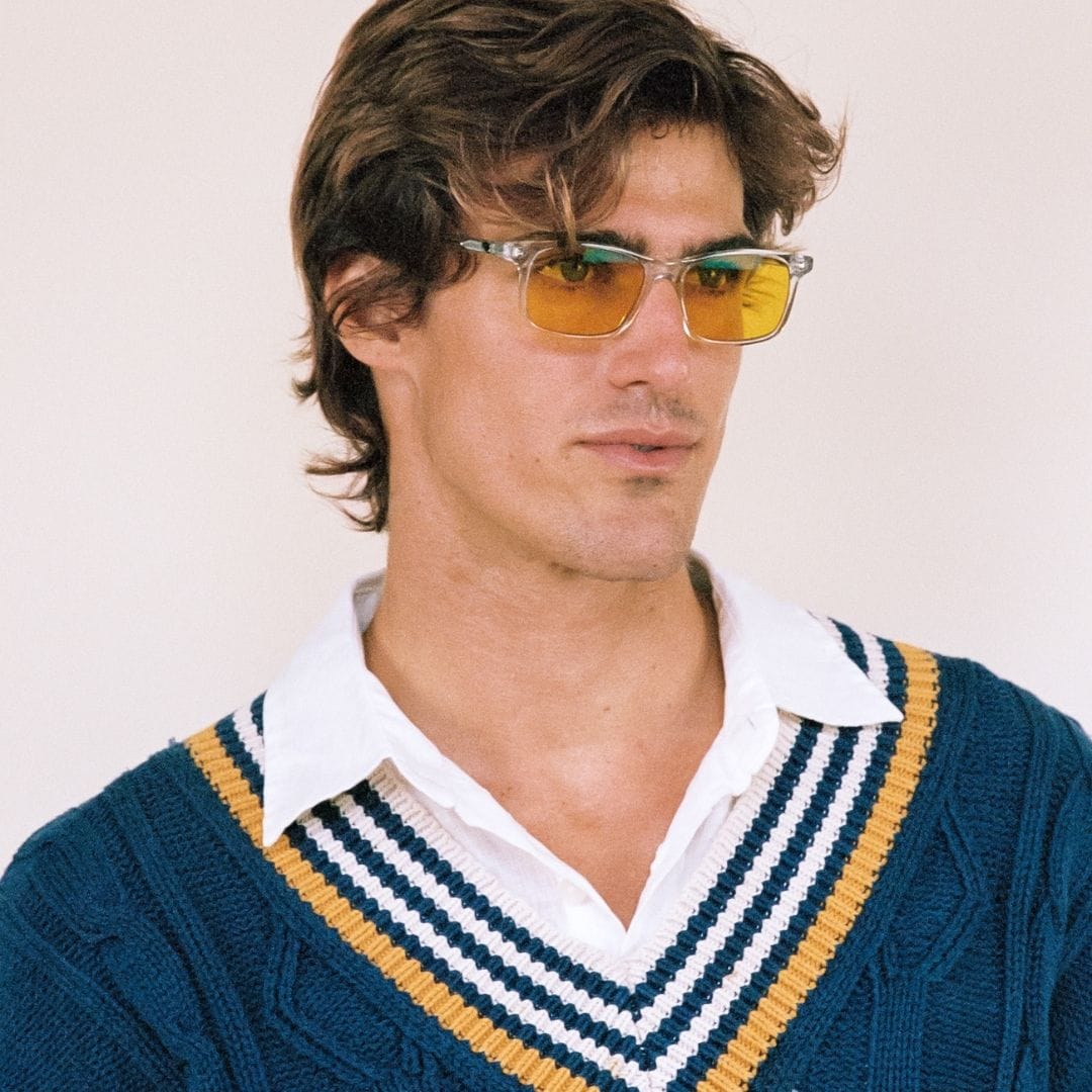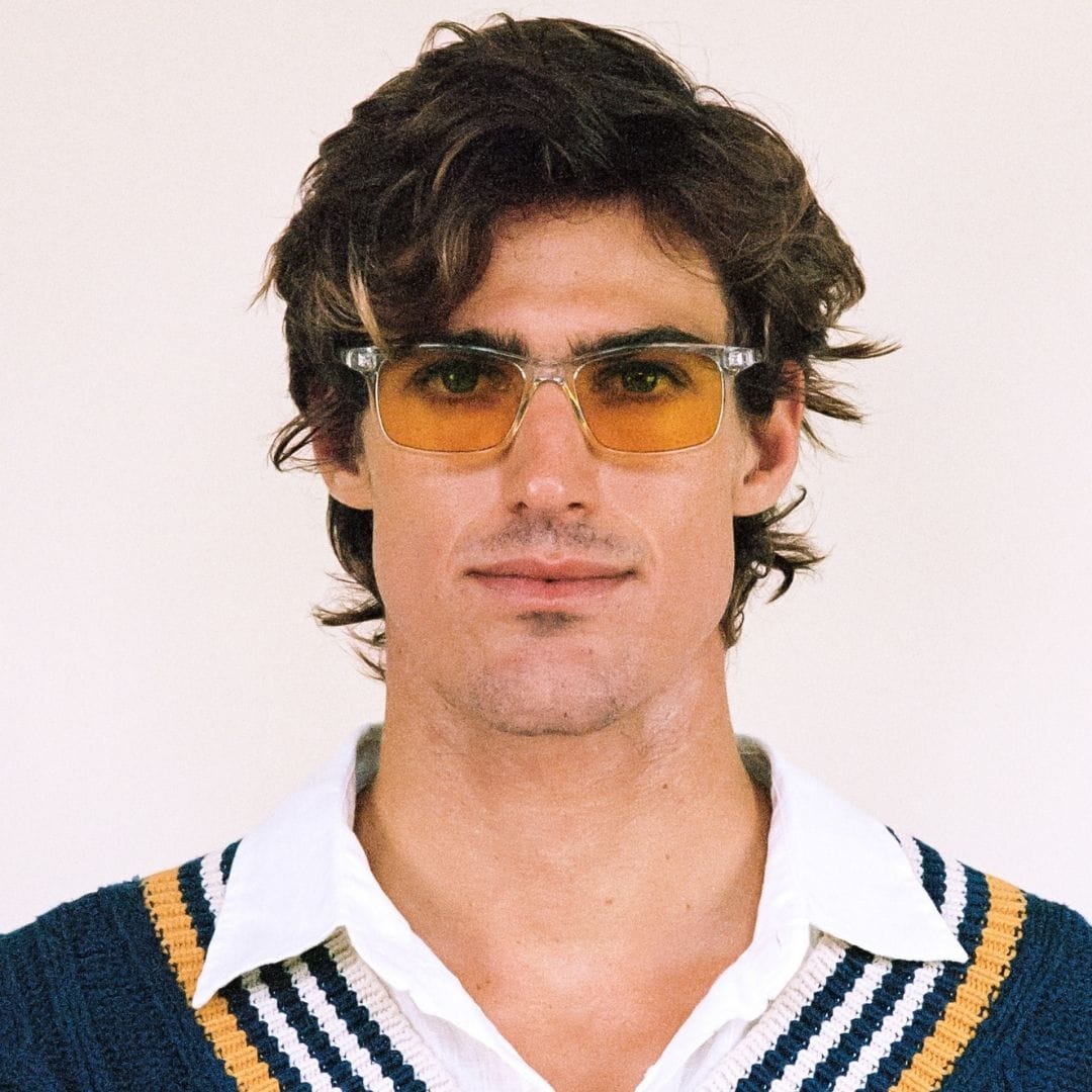 The Look: A contemporary crystal frame in a classic rectangular shape, detailed wire-core arms, and a matching saddle bridge. Like its name, the tinted color lenses really pop out, grabbing the attention they deserve.