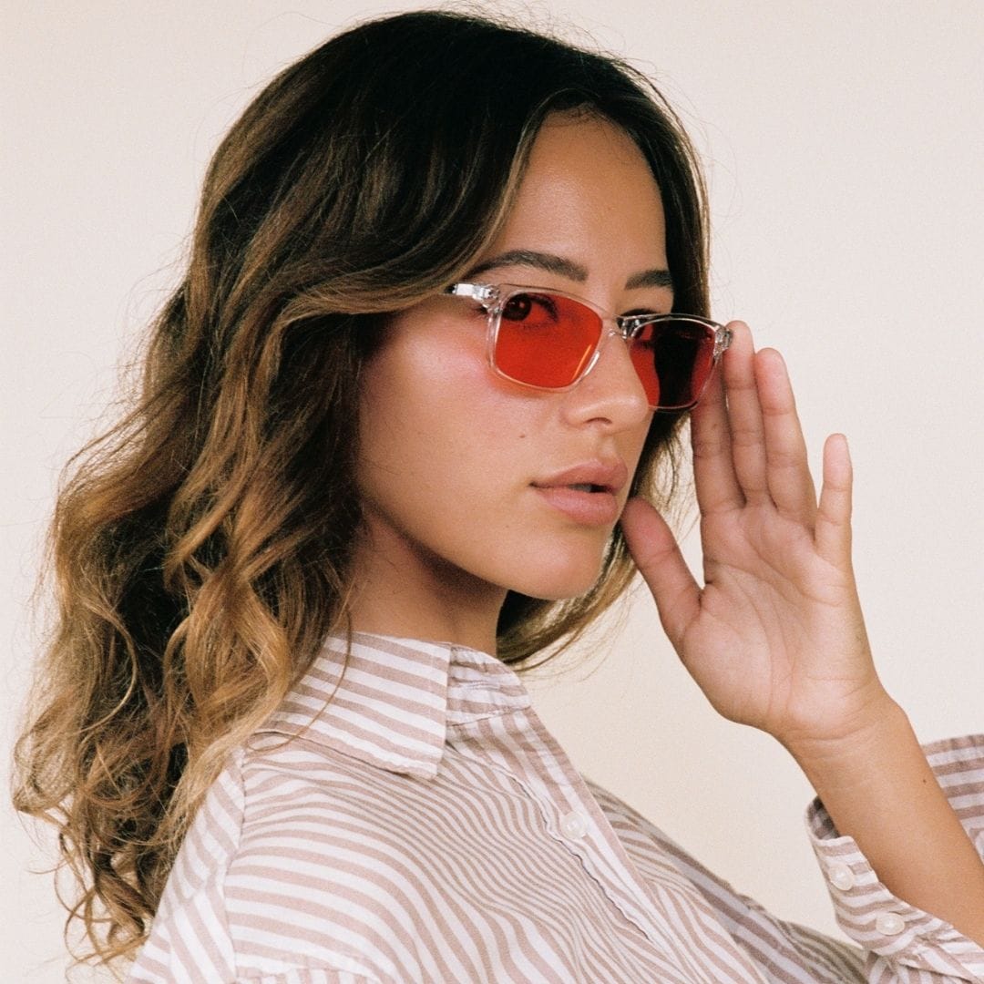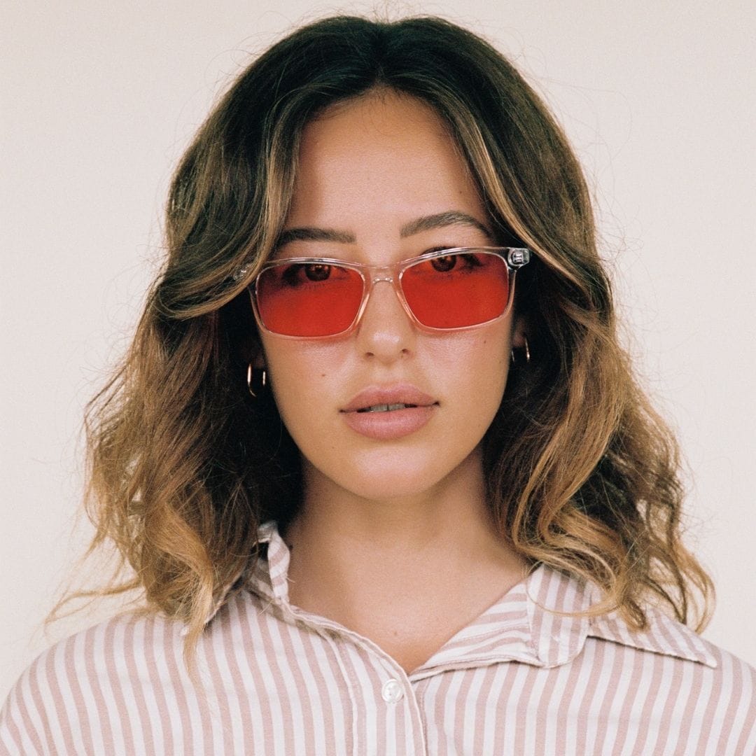 The Look: A contemporary crystal frame in a classic rectangular shape, detailed wire-core arms, and a matching saddle bridge. Like its name, the tinted color lenses really pop out, grabbing the attention they deserve.