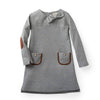 Your girl will be ready to show up in style to school this fall! Perfect for picture time or play time, the thick knit fabric has plenty of stretch for comfort and the suede details at the elbows and pockets add an equestrian touch. Gold buttons at the front add just the right amount of sparkle.