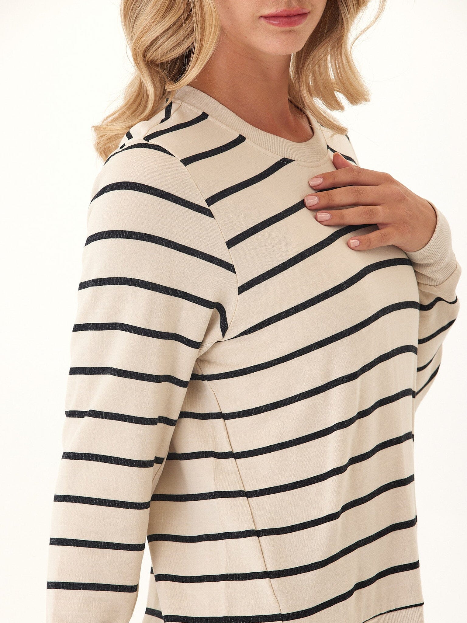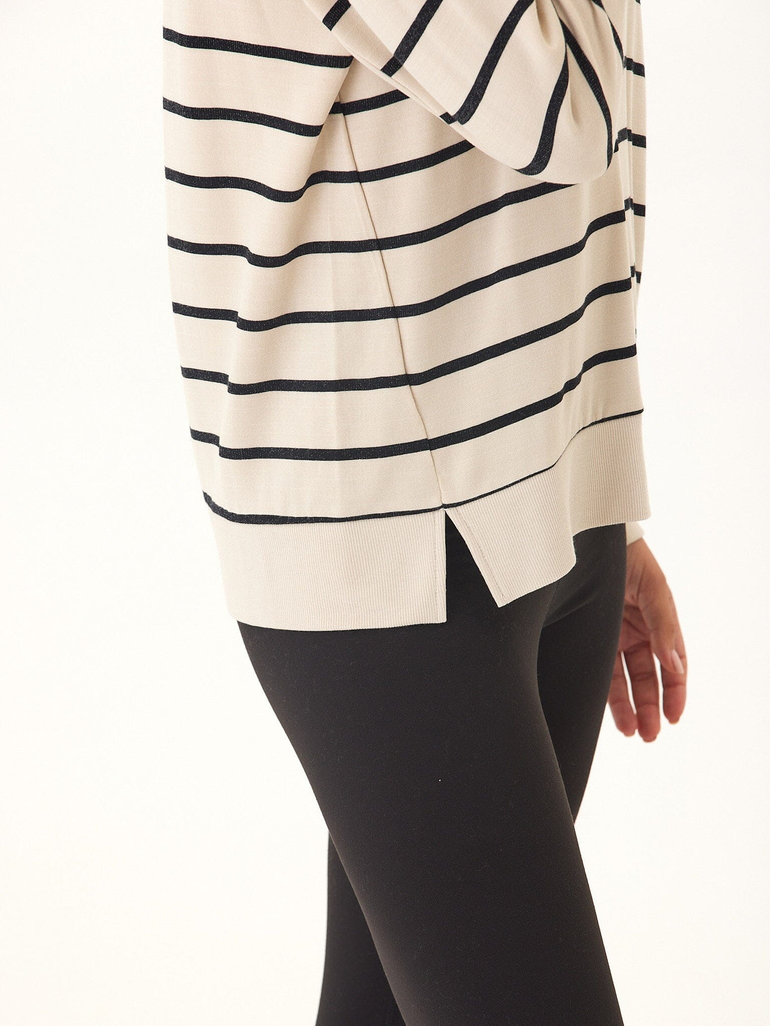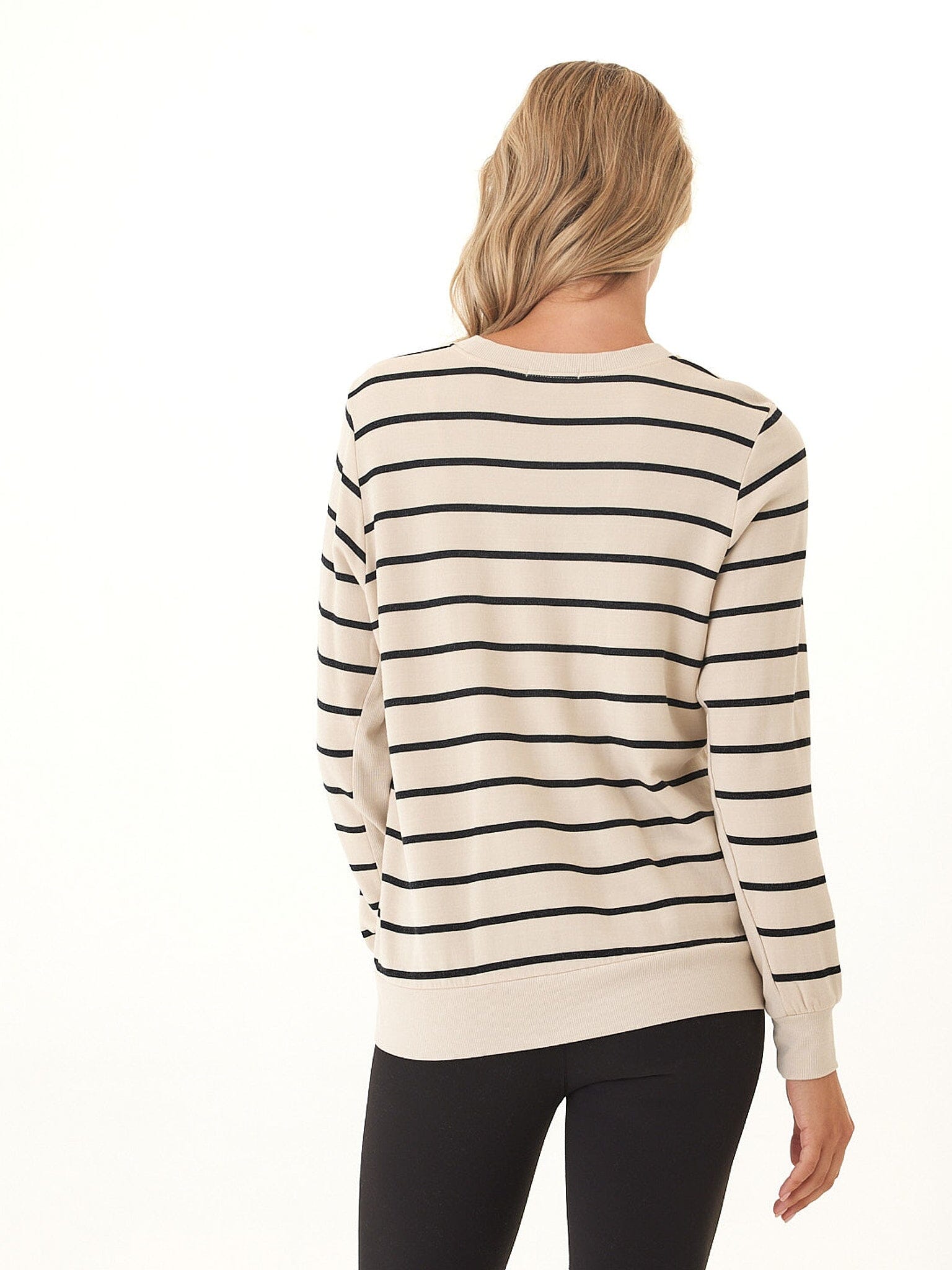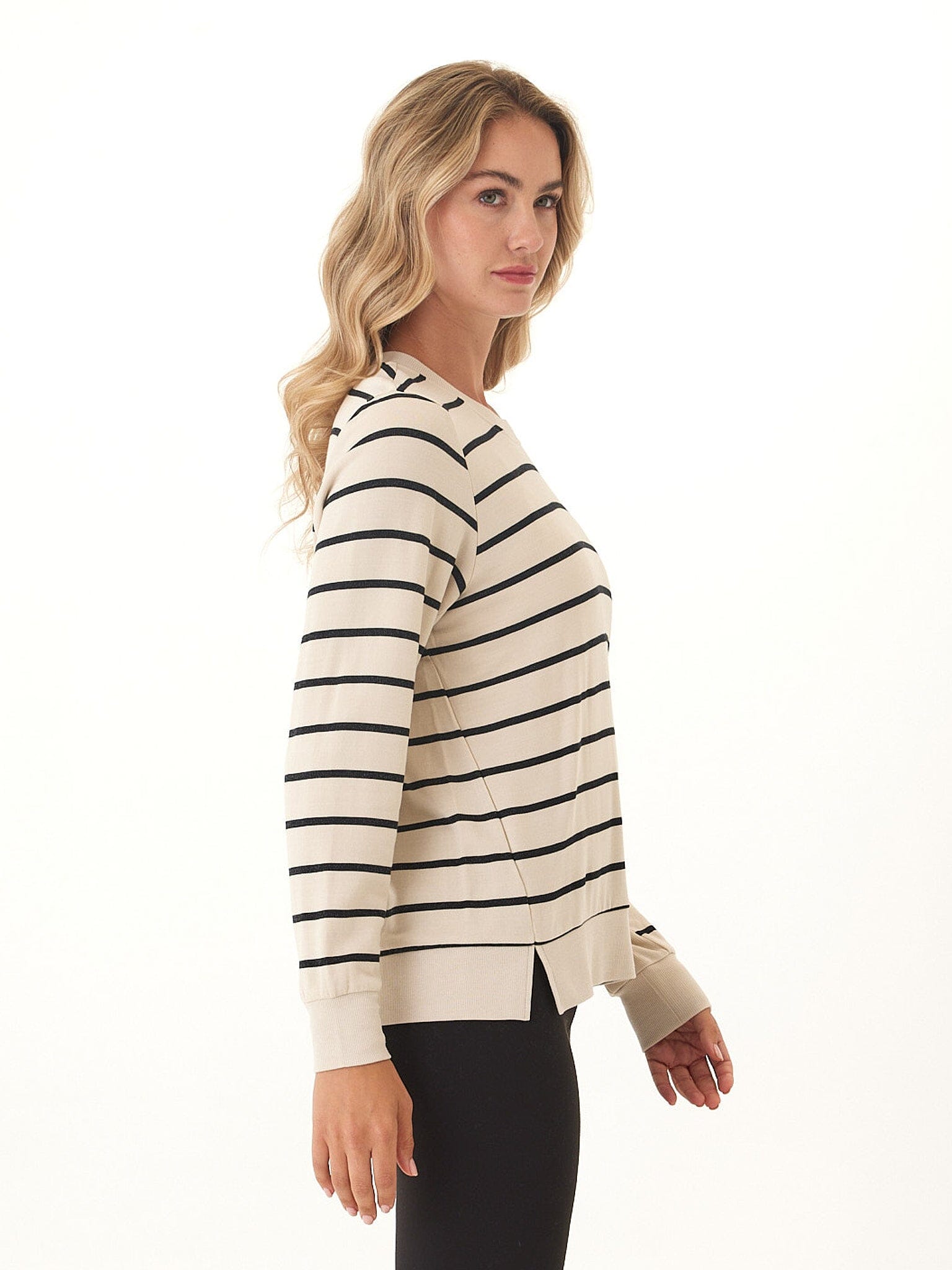 Timeless stripes meet next-level softness in this Feather Fleece pullover. Crafted from our coziest knit, it offers a lightweight feel with a brushed finish that’s perfect for all-day comfort. Designed with a relaxed fit and side-slit hem, it’s an easy layer that balances classic style with modern ease.