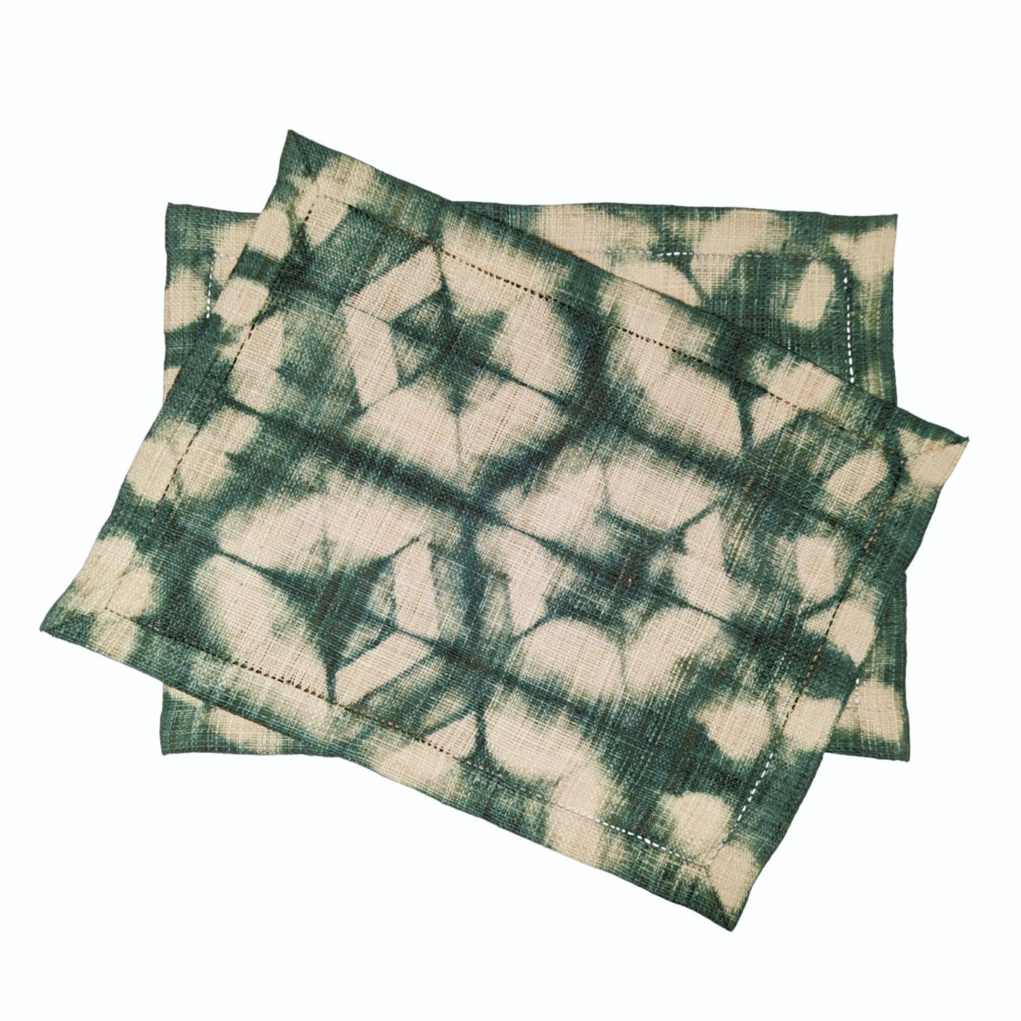 Raffia Shibori Placemat (Pair) - Turtle Pattern - Green