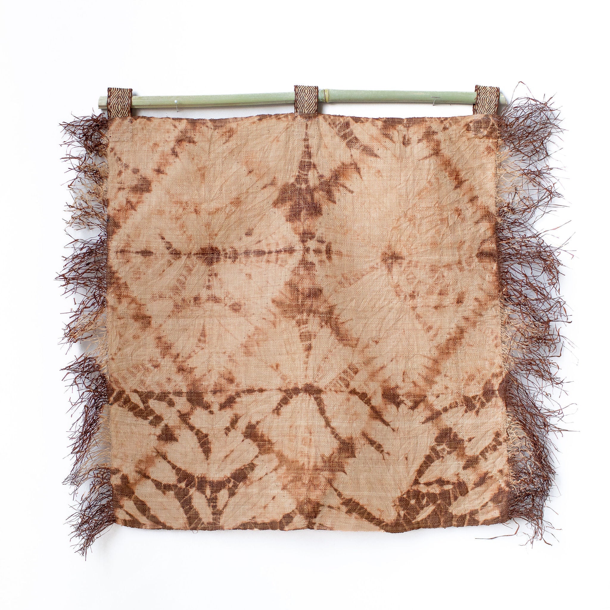 Raffia Wall Hanging - Shibori Spider Web Pattern - Brown