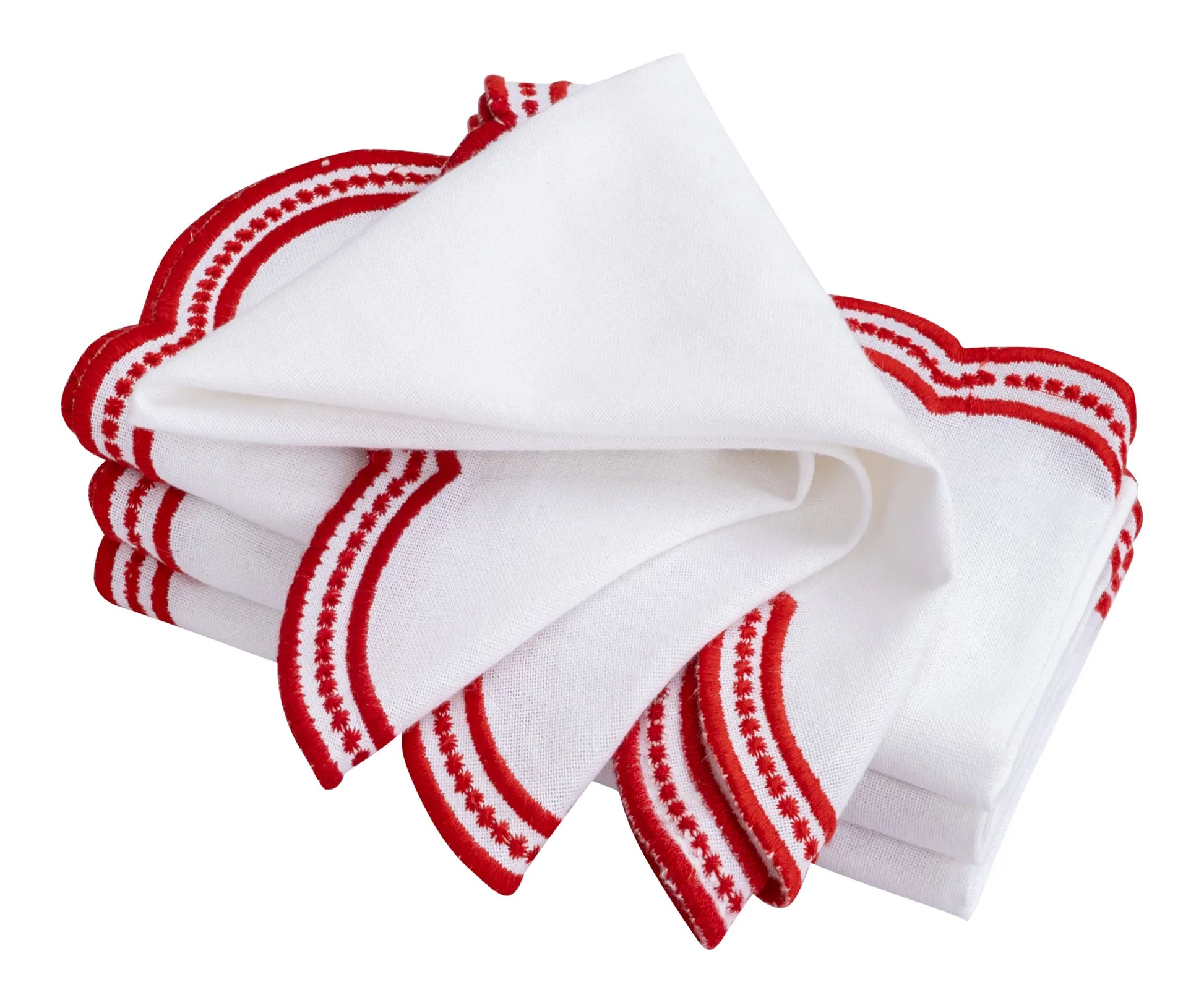 Red Scalloped Embroidered Napkins