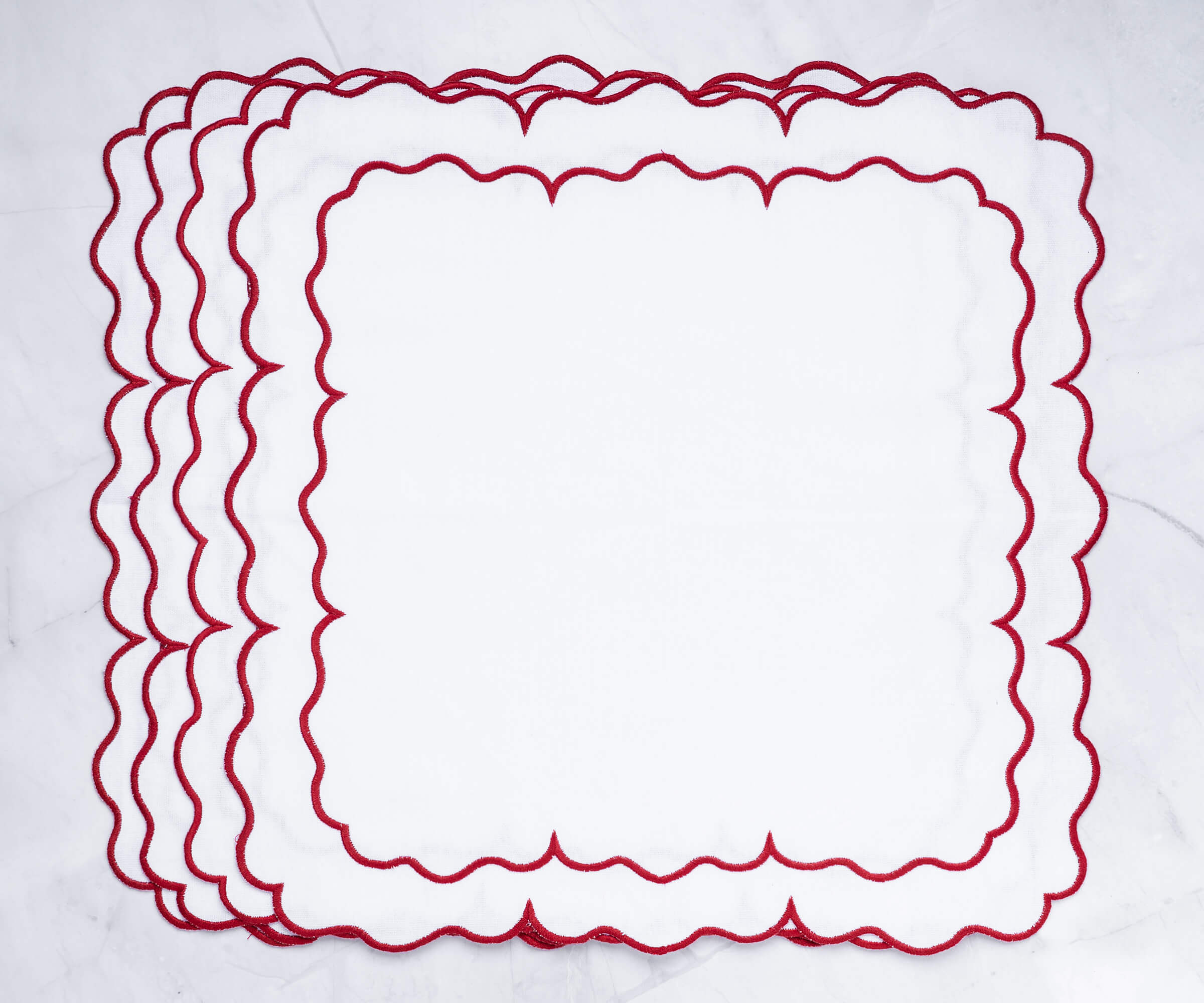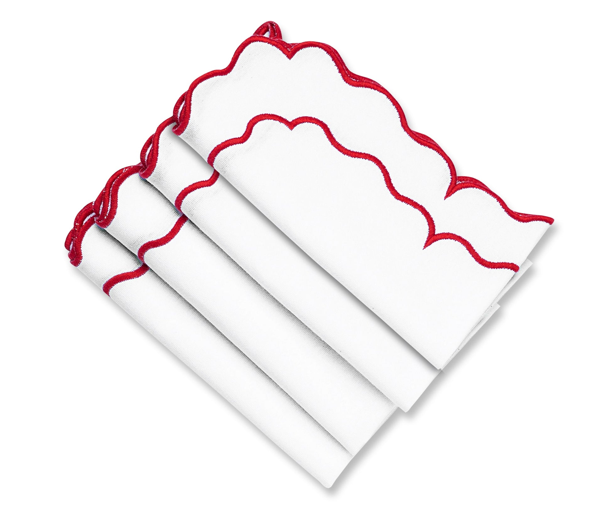 - Pair the scalloped edge napkins with scalloped placemats and an embroidered table runner. The check table linen collection is designed in buffalo plaid, French stripes, and country stripes.