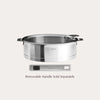 Strate®cookware, is made of stainless steel 18/10, preserves the taste of your food and is easy to clean after cooking. Requires handles or detachable handles.