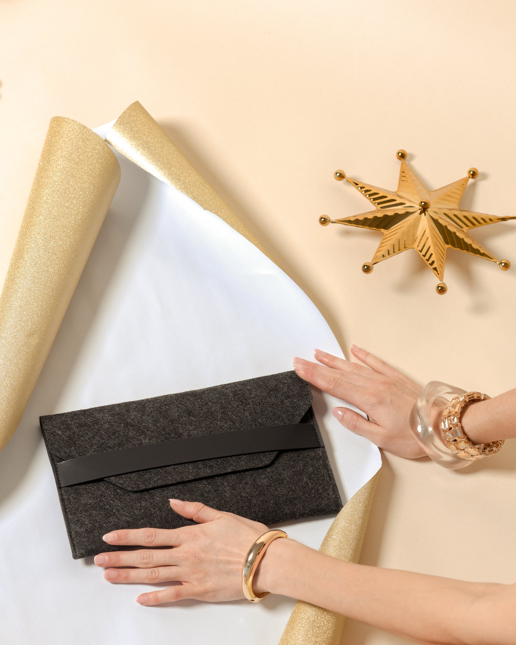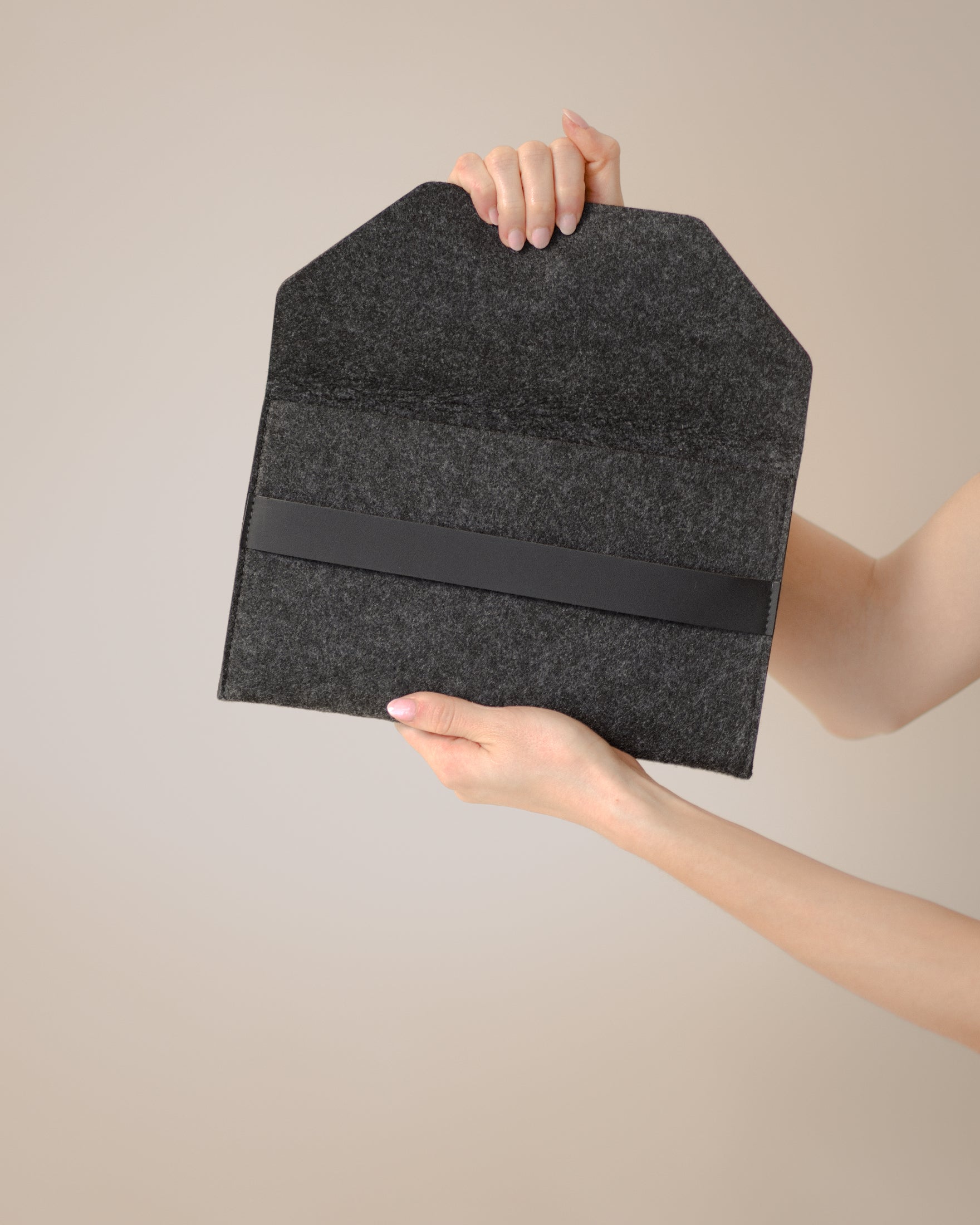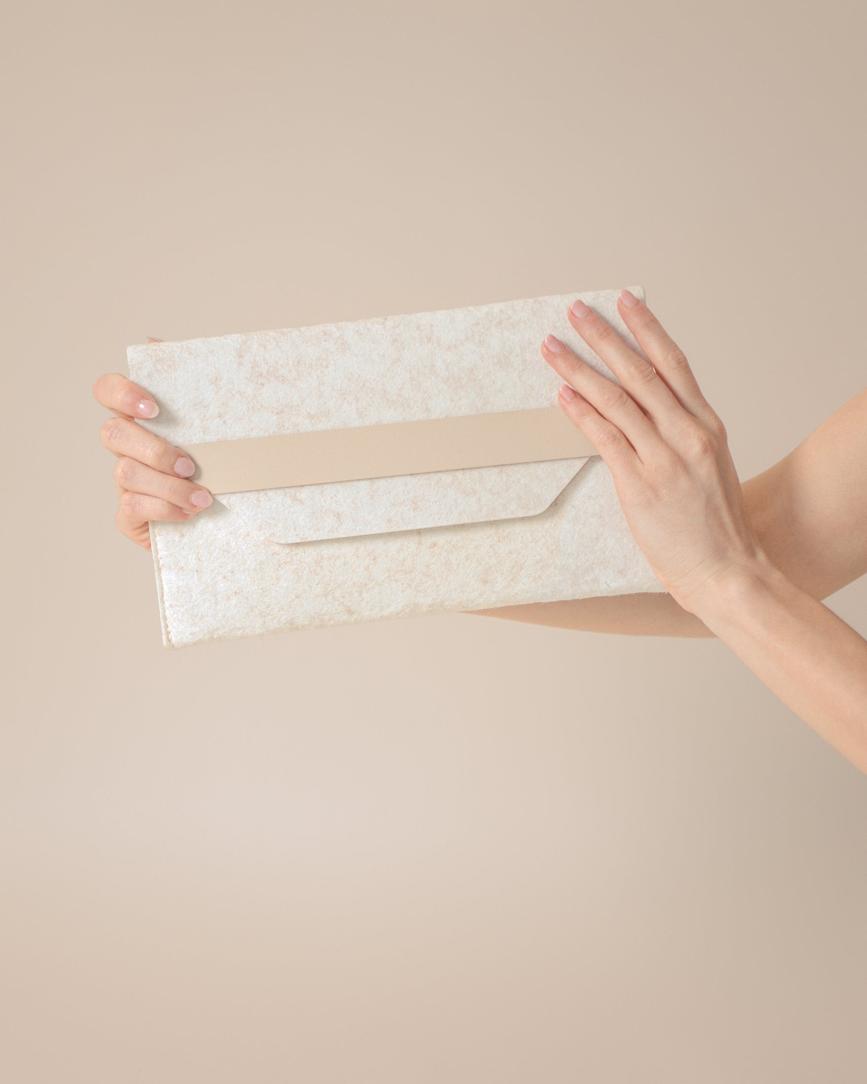 Perfectly sized for on-the-go convenience, this chic clutch is crafted from durable felt fabric for a modern, minimalist look.