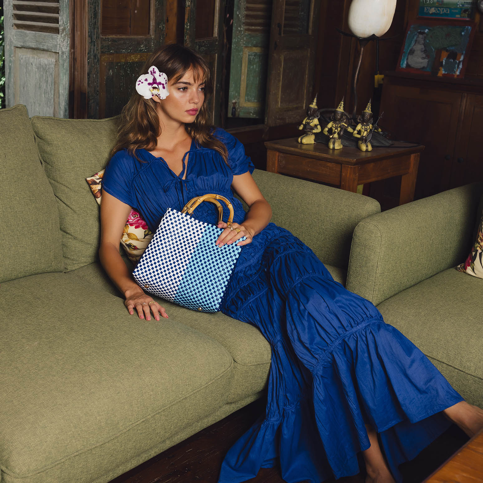 The Srikandi dress is a mesmerizing creation, meticulously handcrafted by our talented artisans in Bali. Its graceful layered ruffles flow effortlessly with your every movement, turning each step into a statement of elegance that commands attention.