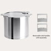 Stainless steel Stockpots 18/10 with flat glass lid, brushed finish, detachable handles, from Strate®collection. A must have in the kitchen, Strate stockpots are available in 3 sizes: 5.5 qt, 7.5 qt and 10 qt.