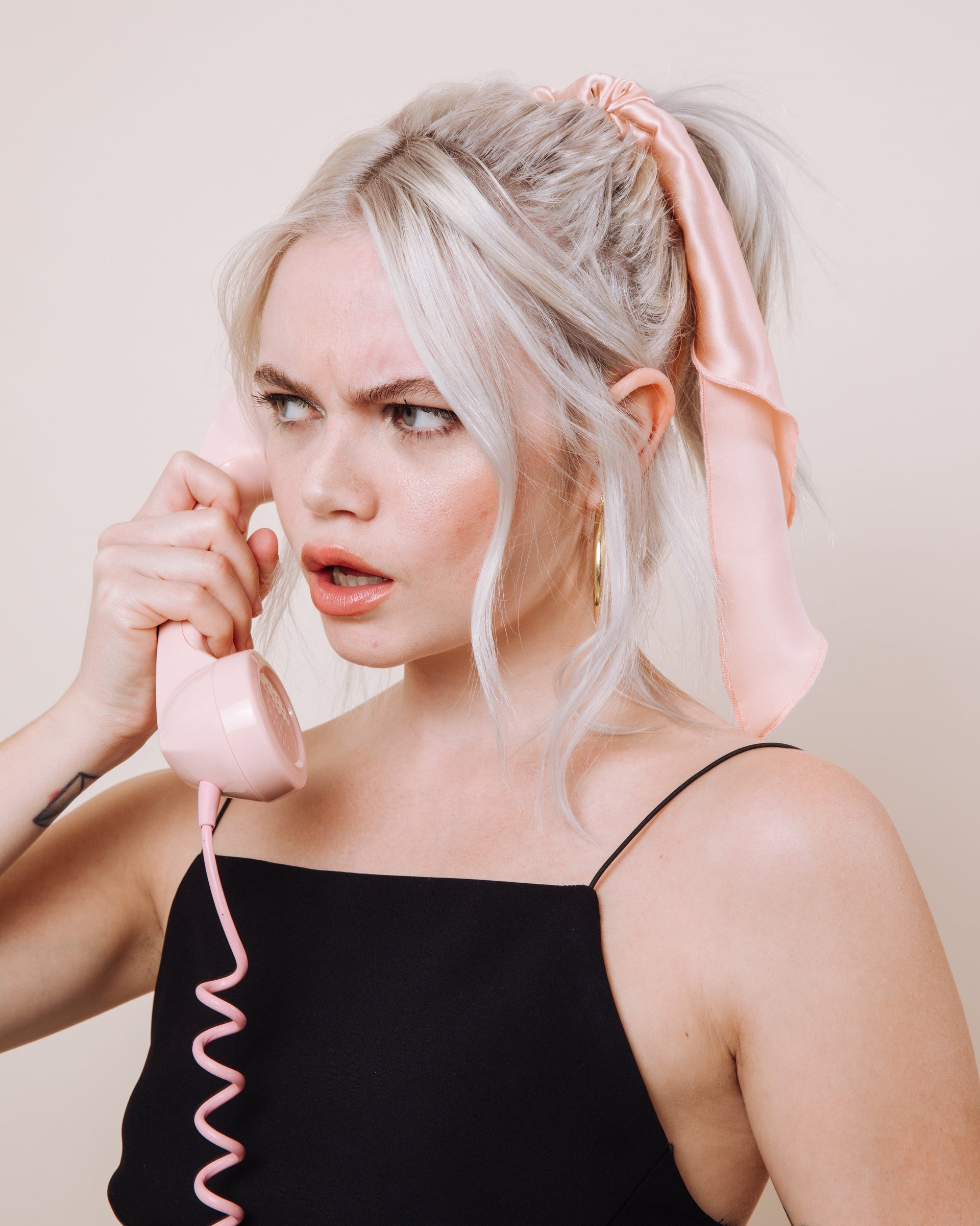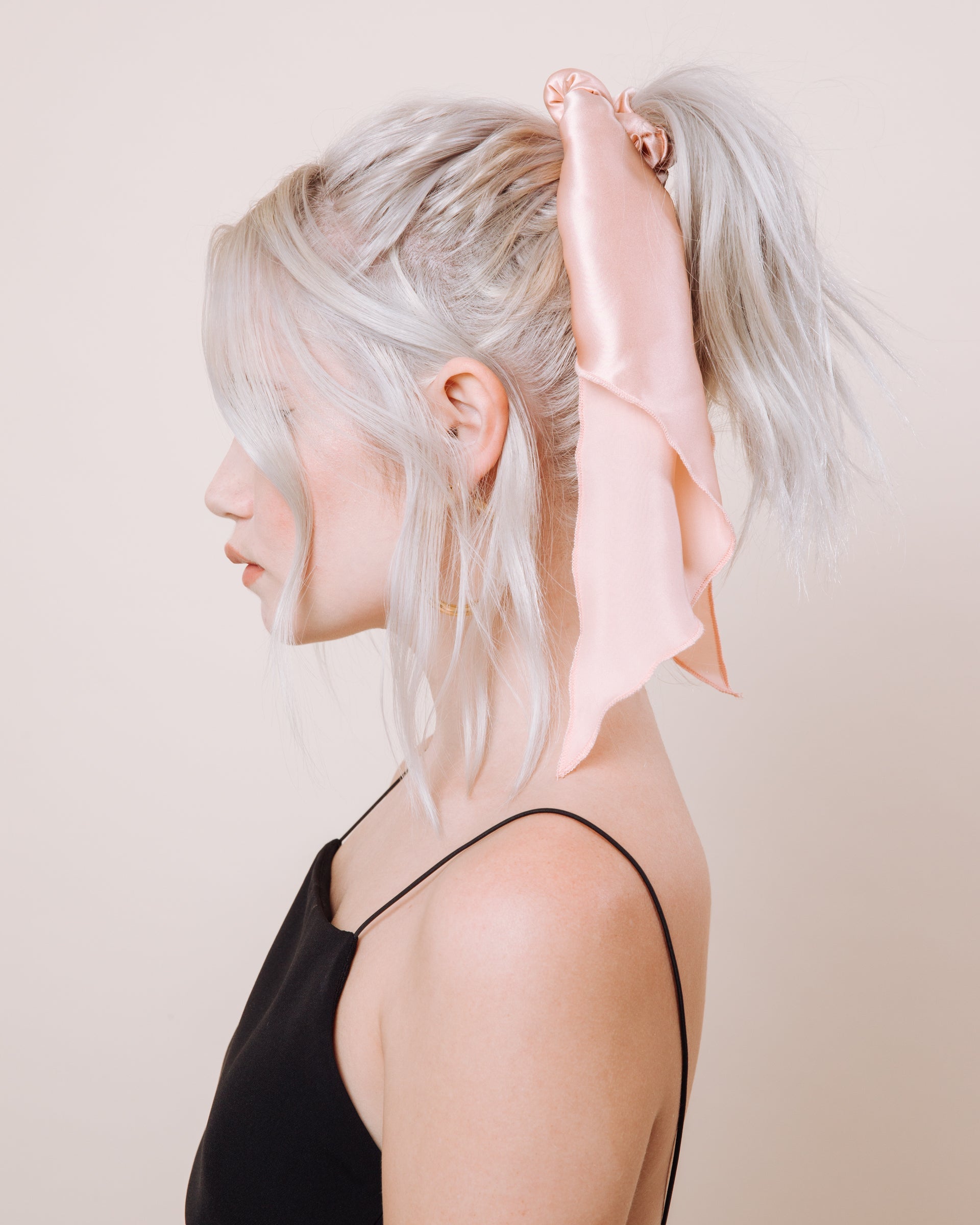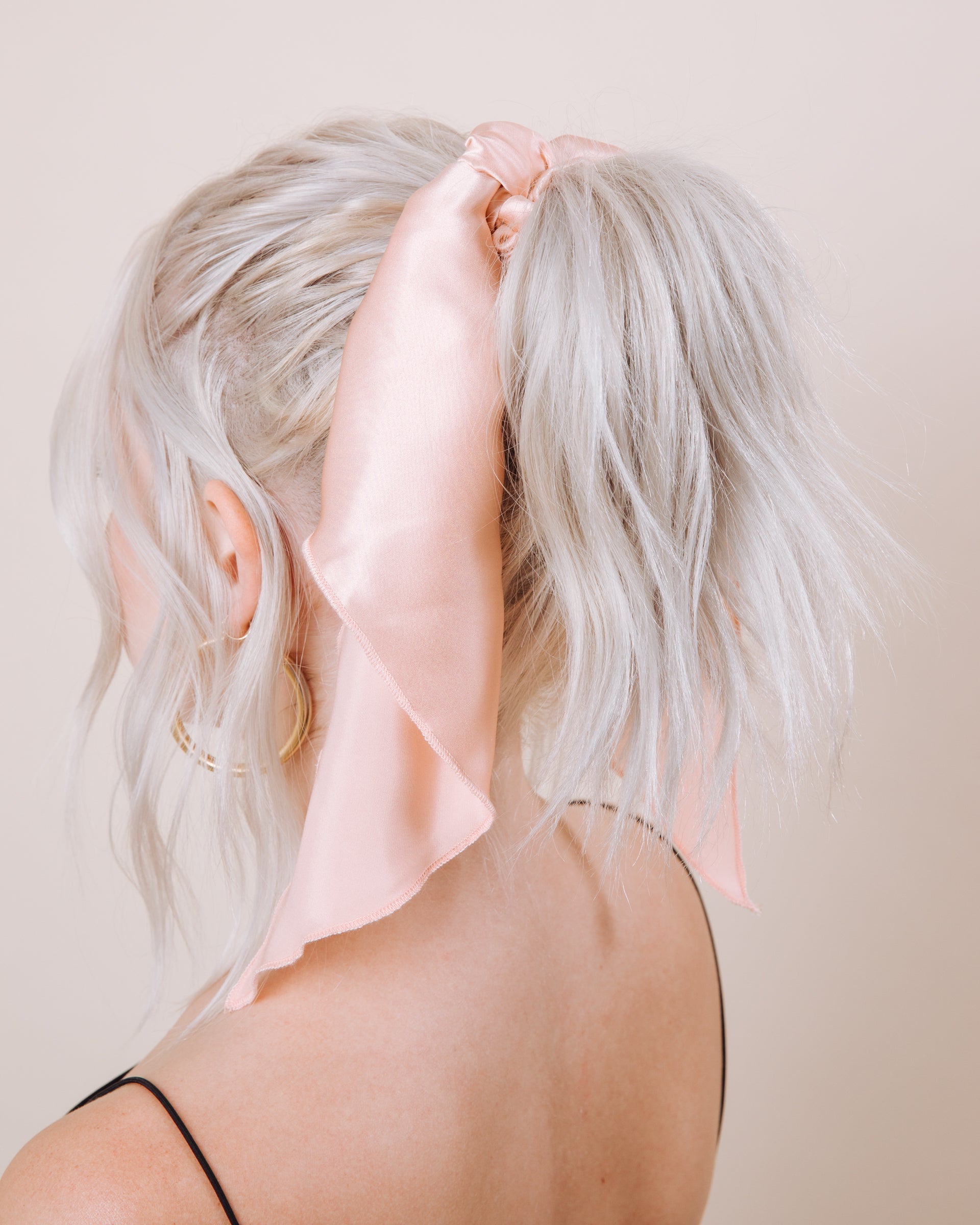 Super versatile, super fun! This style delivers in so many ways! It's not sewn together so you get a mini scrunchie and a scarf that can be worn bandana style, hair scarf style, as a handbag tie, the possibilities are endless! And of course, the way it will be prepared for you tied up in our long scrunchie tie style!