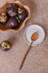 Hand carved from teak. No two are alike and boast a marbling of rich browns, golden hues, and tans.