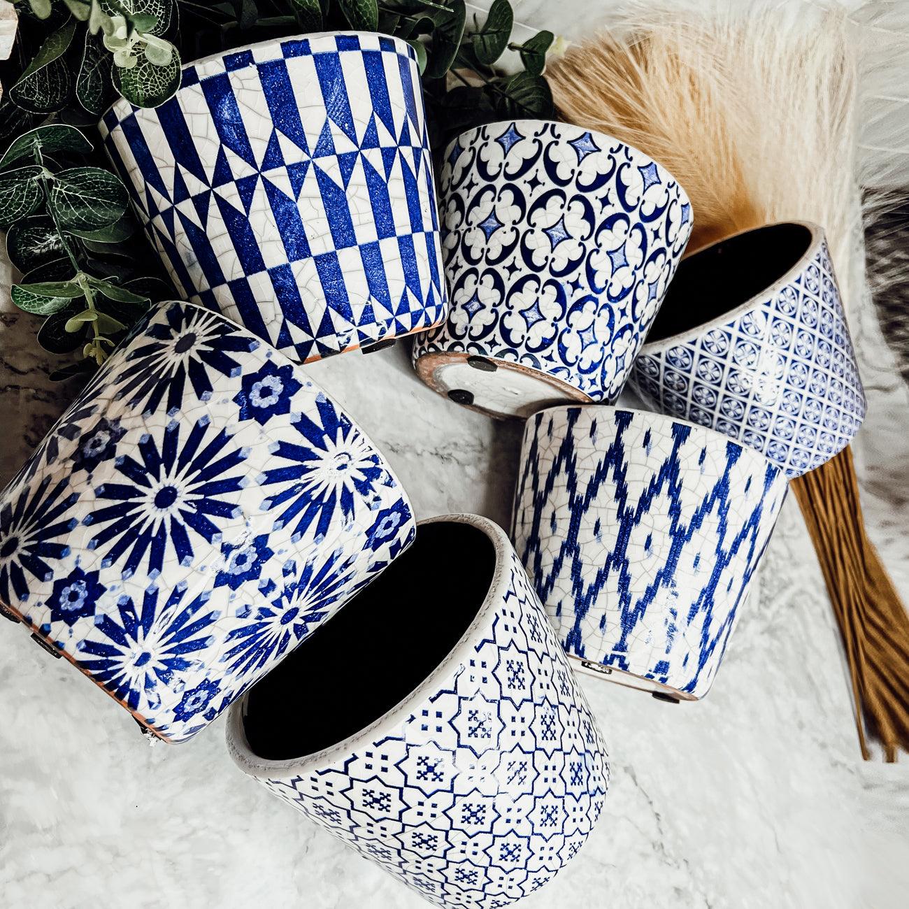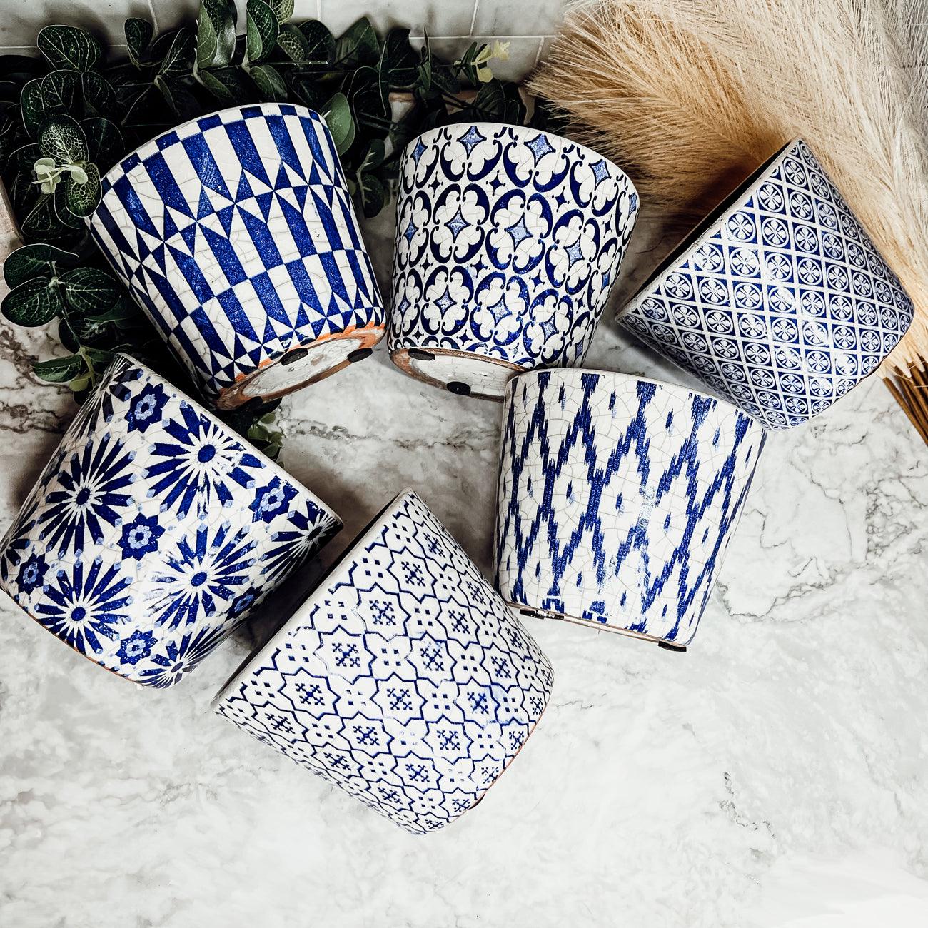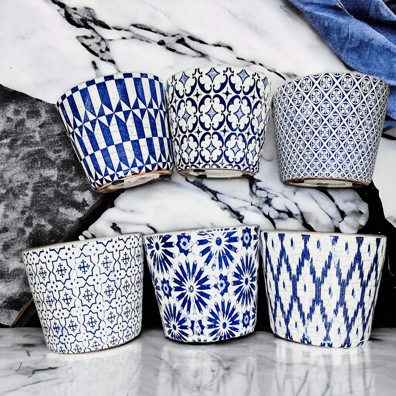 • Rustic Patterned Flower Pots were inspired by traditional vintage floor tiles still found today in old village houses and apartments all across Spain and Italy.