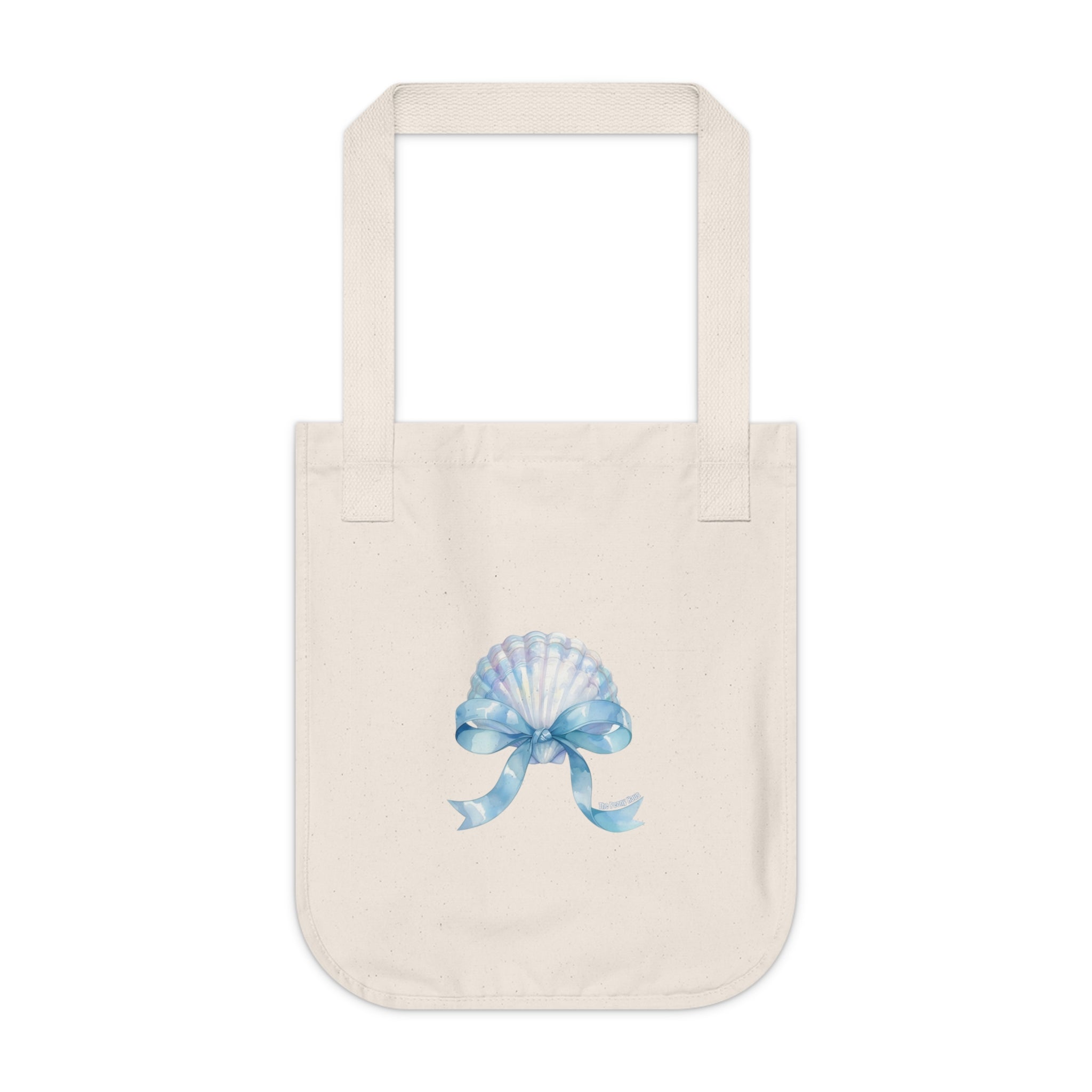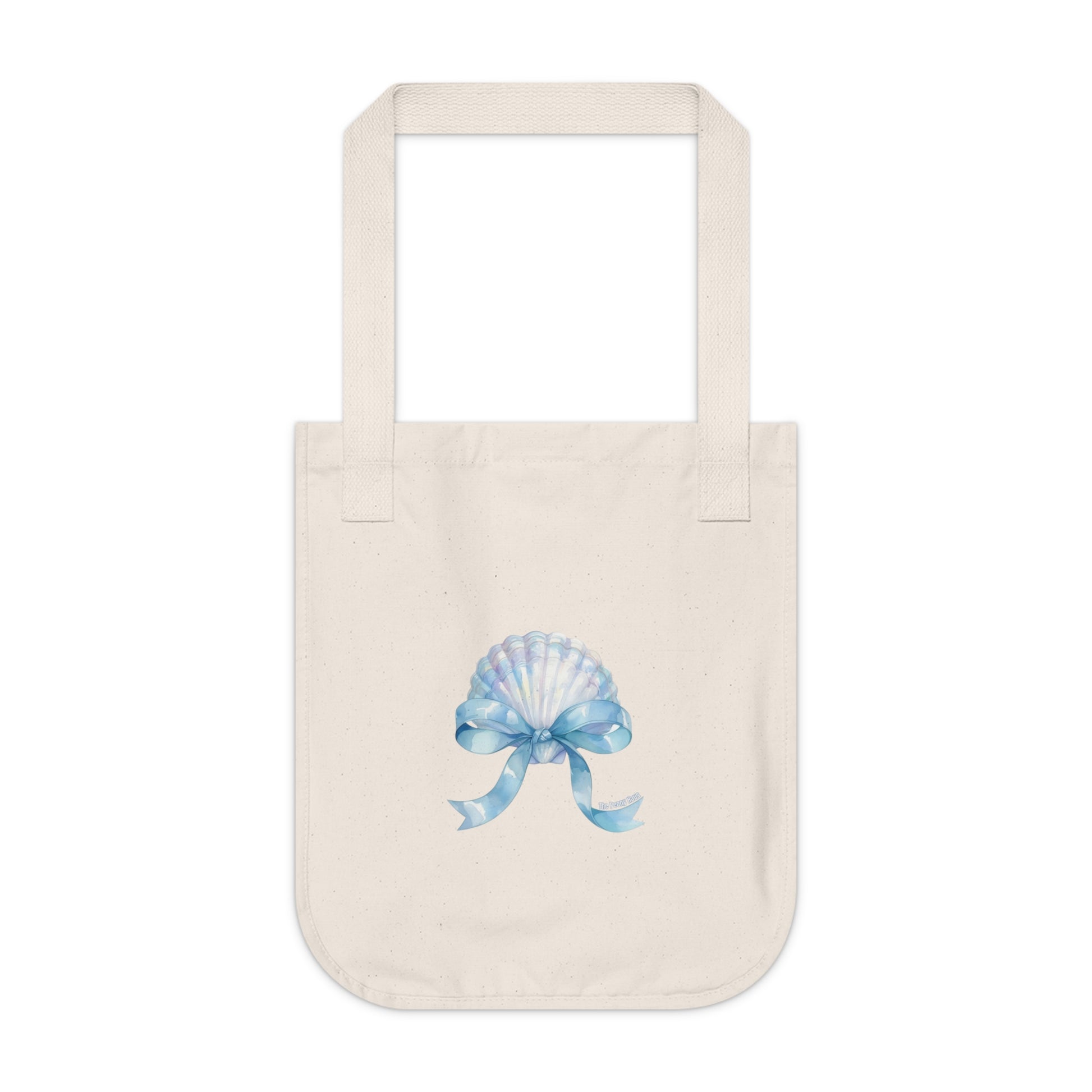 Light, natural, and quietly charming — this organic canvas tote carries the calm of a sea breeze. The soft, unprocessed cotton shows subtle flecks that feel artisanal under your hand. A watercolor-style seashell and pale blue ribbon sit at the center, whispering of shoreline mornings, salt air, and slow walks with sand between your toes. It holds groceries, a market haul, a paperback, or a beach towel without fuss. The reinforced web handles and sturdy medium-weight fabric mean this bag moves from errands to ocean afternoons with ease. Bring a little coastal calm to everyday routines or to a weekend by the water.
