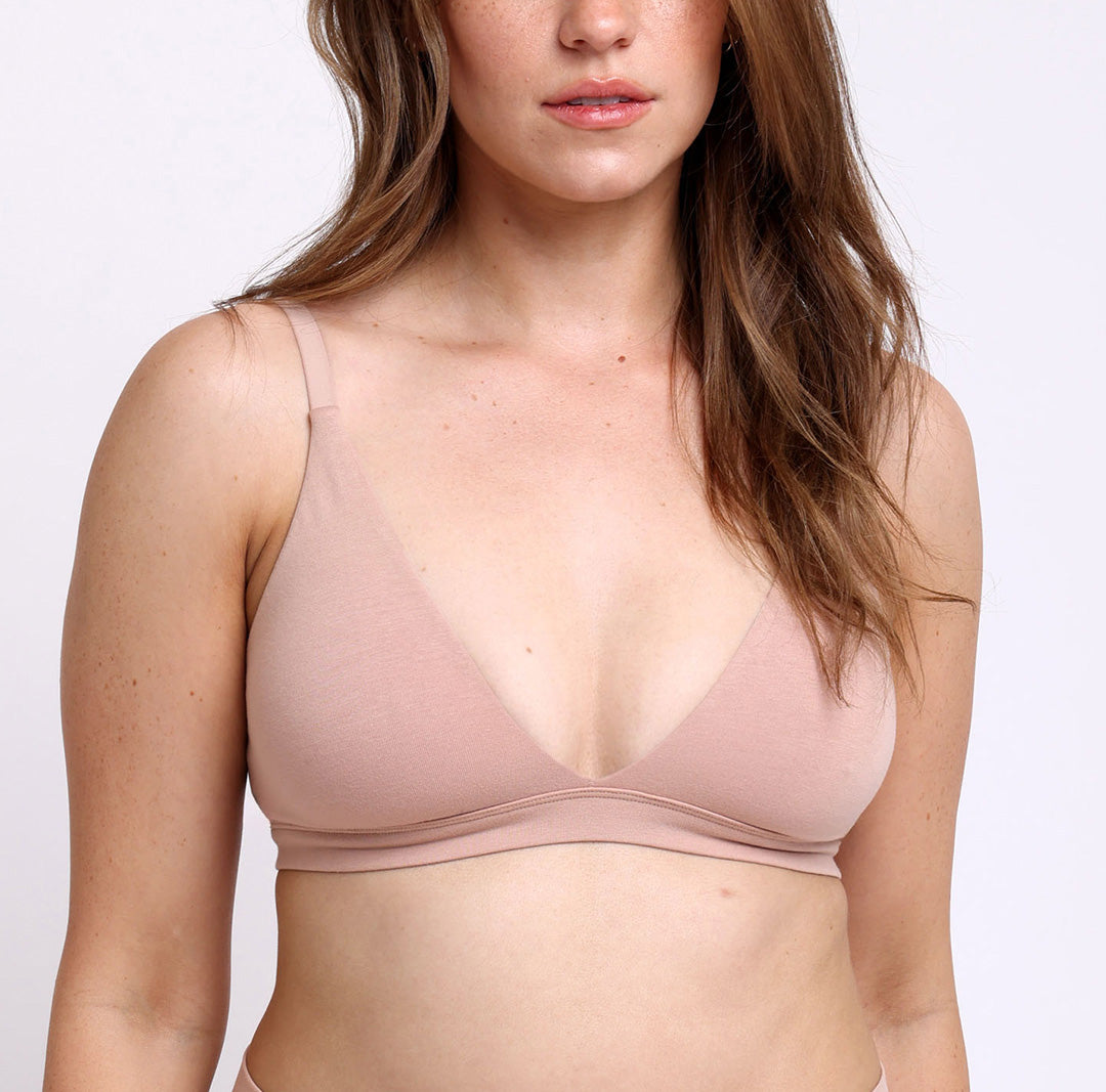 The Triangle Bralette is wireless and effortless, making it a perfect everyday bra. It features adjustable multi-way straps and a wider hook-and-eye closure for the best customizable fit. Wear your straps straight or crisscross to accommodate your outfit. Designed with unpadded, fully lined cups and supportive, flexible side boning. Made with soft GOTS-certified organic cotton and detailed with a full sheer mesh back.