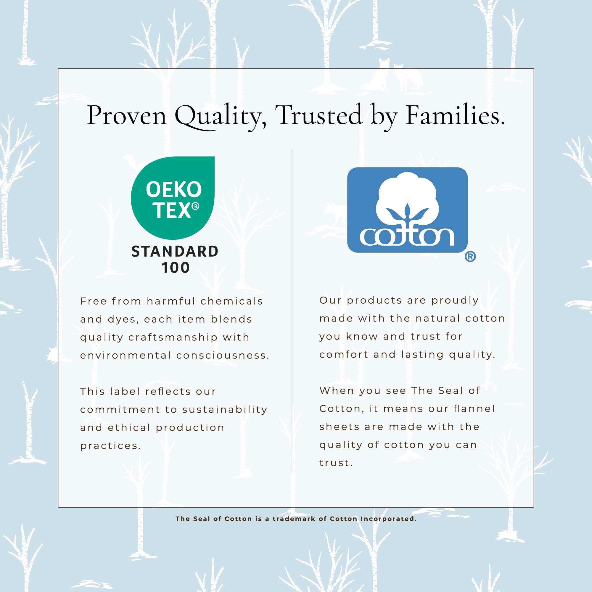 Fall to sleep in ultra-soft, breathable, and quality Turkish cotton flannel sheets. This collection features elevated lodge prints that will add a subtle update to your bedroom decor year-round. These 100% cotton sheets are double-brushed for softness and durability to ensure you have a set that offers comfort every night. Flannel sheets offer warmth for even the coldest of nights, so add these luxurious cotton flannel sheets to your bed and experience true comfort. Products that look good, feel good, and are made well, so you can trust you're getting high-quality products. These cotton flannel sheets are Standard 100 Certified by OEKO-TEX®.