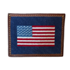 Add some patriotic spirit to your everyday style with this USA Card Case Wallet. The genuine leather wallet is hand-stitched with the flag of the United State of America, and contains 3 card pockets and an interior coin/bill pocket. We sew with 100% pearl cotton embroidery threads to provide beautiful colors and texture. The leather is top-stitched with finely detailed contrasting color, all in a great size that fits perfectly in your pocket or bag. Finished size is 4"x3".
