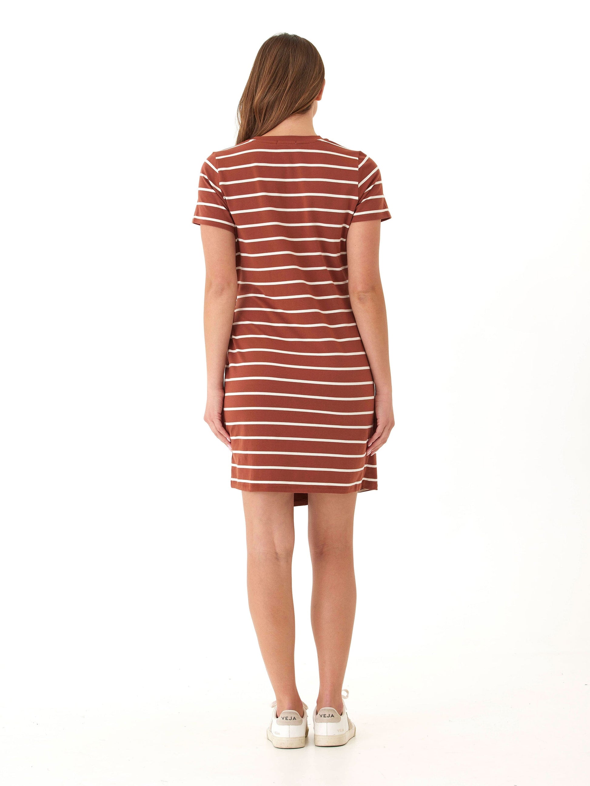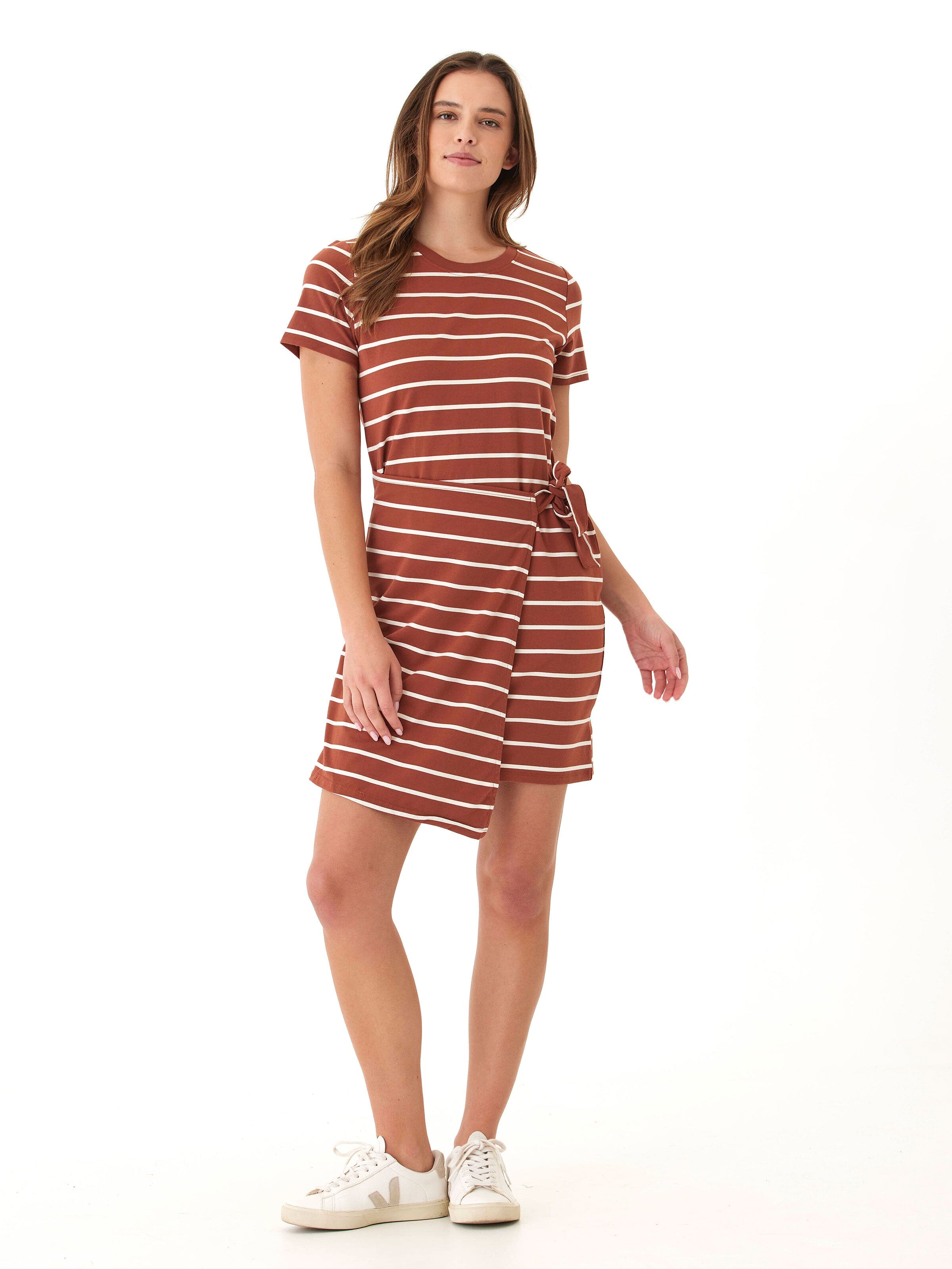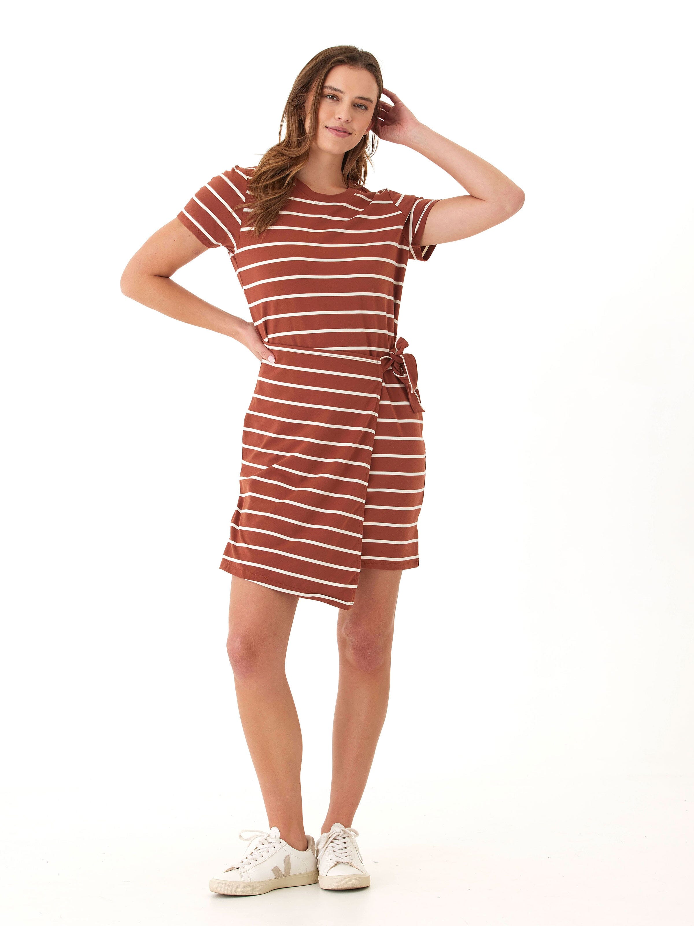 Effortlessly chic and sustainably crafted, our Striped Wrap Tie Dress is the perfect blend of comfort and style. Made from our ultra-soft, breathable Eco Jersey fabric, this dress offers a lightweight feel with just the right amount of stretch for all-day wear. The classic striped pattern and relaxed fit are complemented by a stylish wrap tie at the waist, creating a flattering silhouette.
