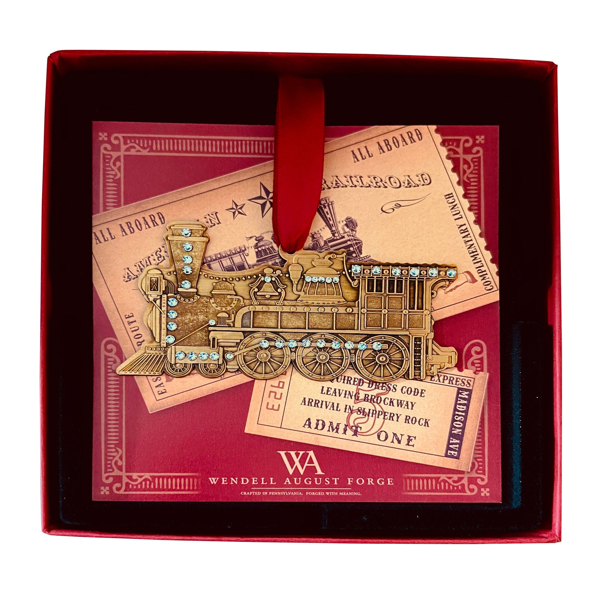 A steam engine whistle blares as a classic train rolls into the station while smoke billows through the air. A classic scene from the past. For those who grew up visiting Wendell August Forge's original historic factory, you might remember the vintage toy train traveling through the store. For many of our customers and employees, the sound of the train tracks is favorite memory that will always be cherished. Each handcrafted ornament is meticulously adorned with Austrian crystal.