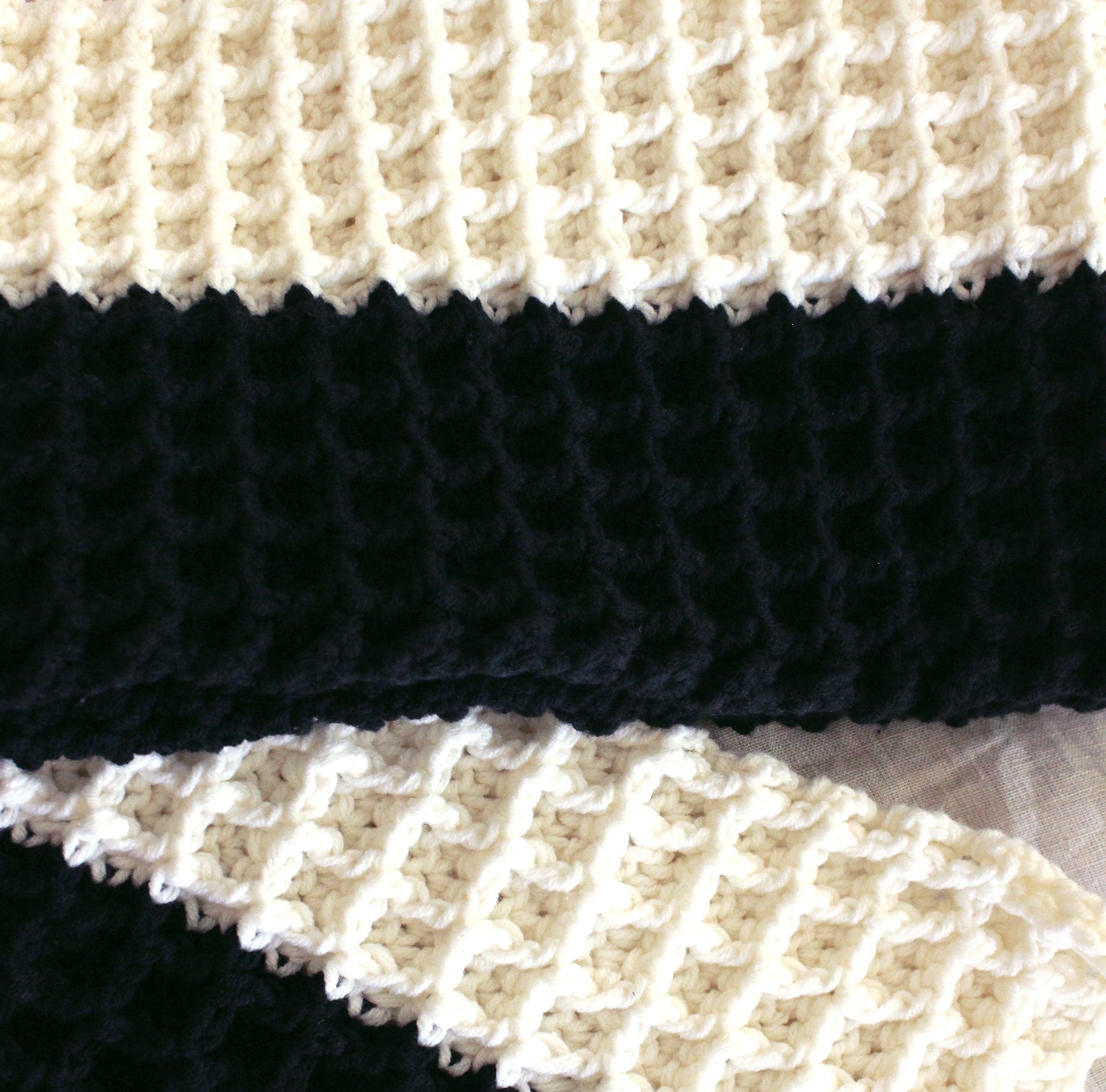 WAFFLE Crochet Scarf in Black & Off White