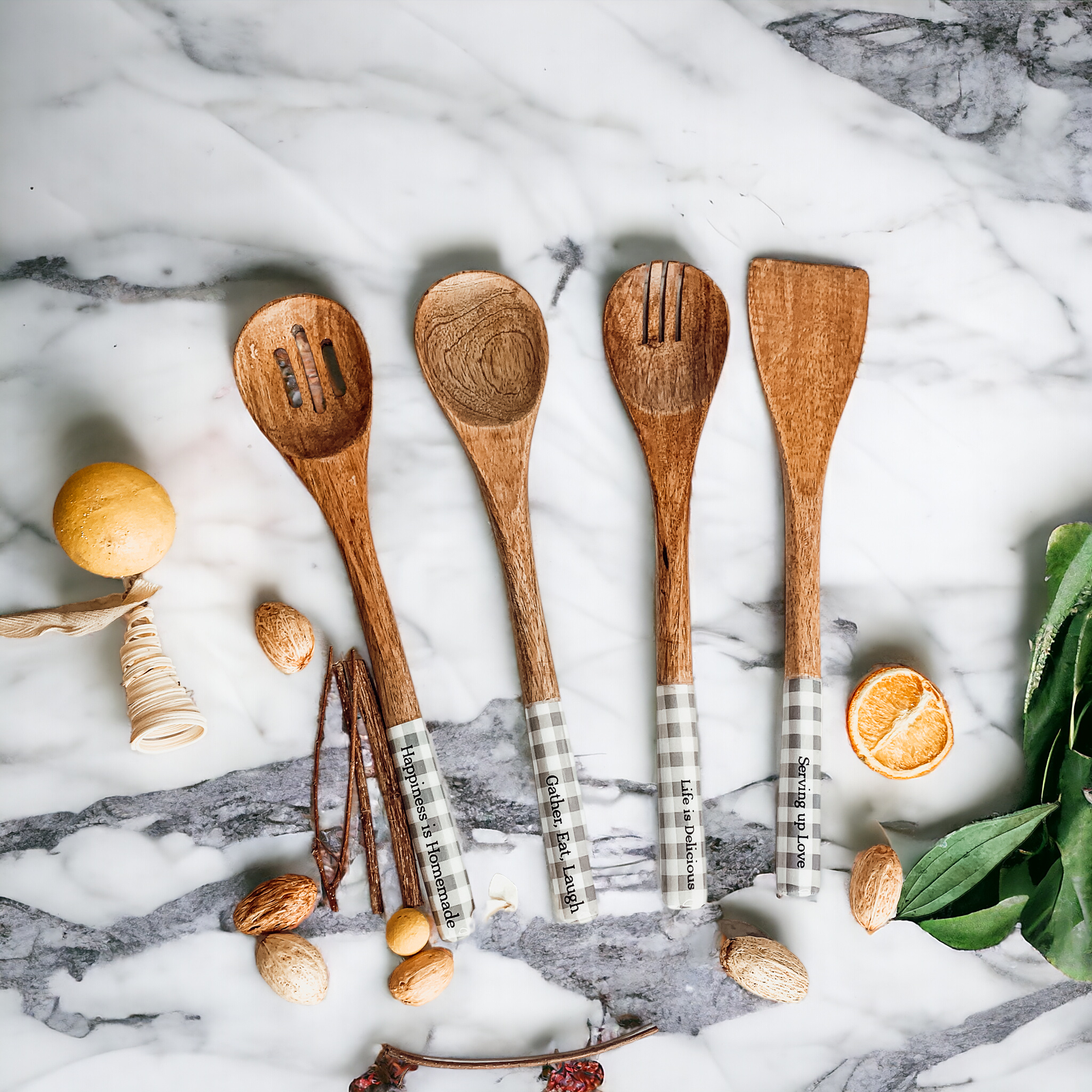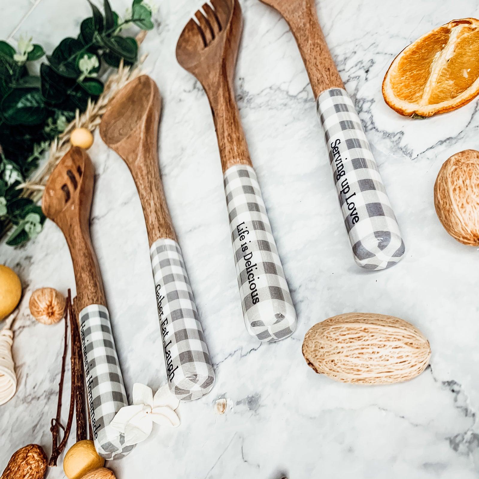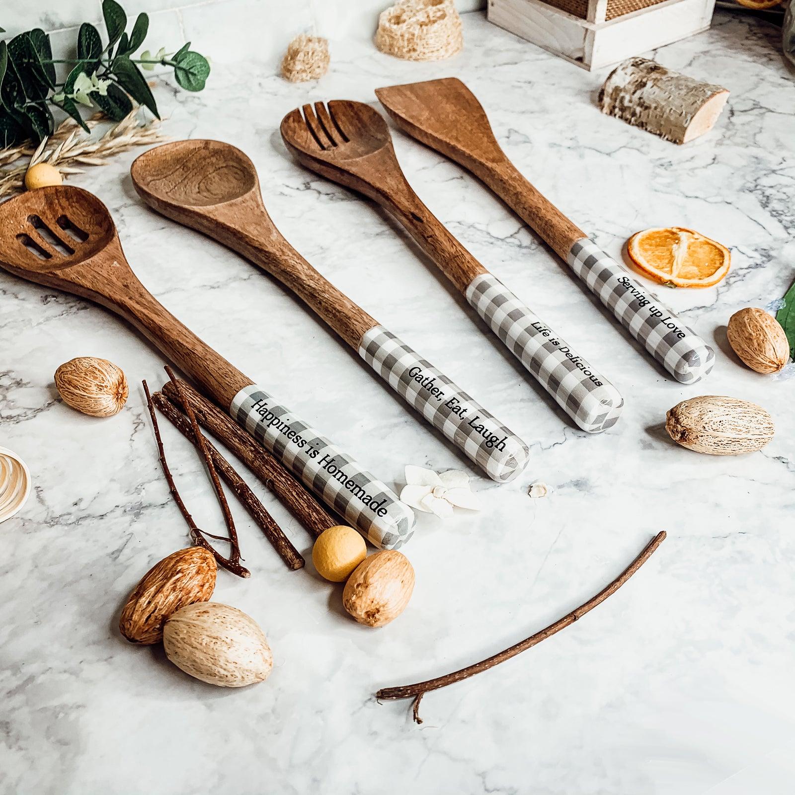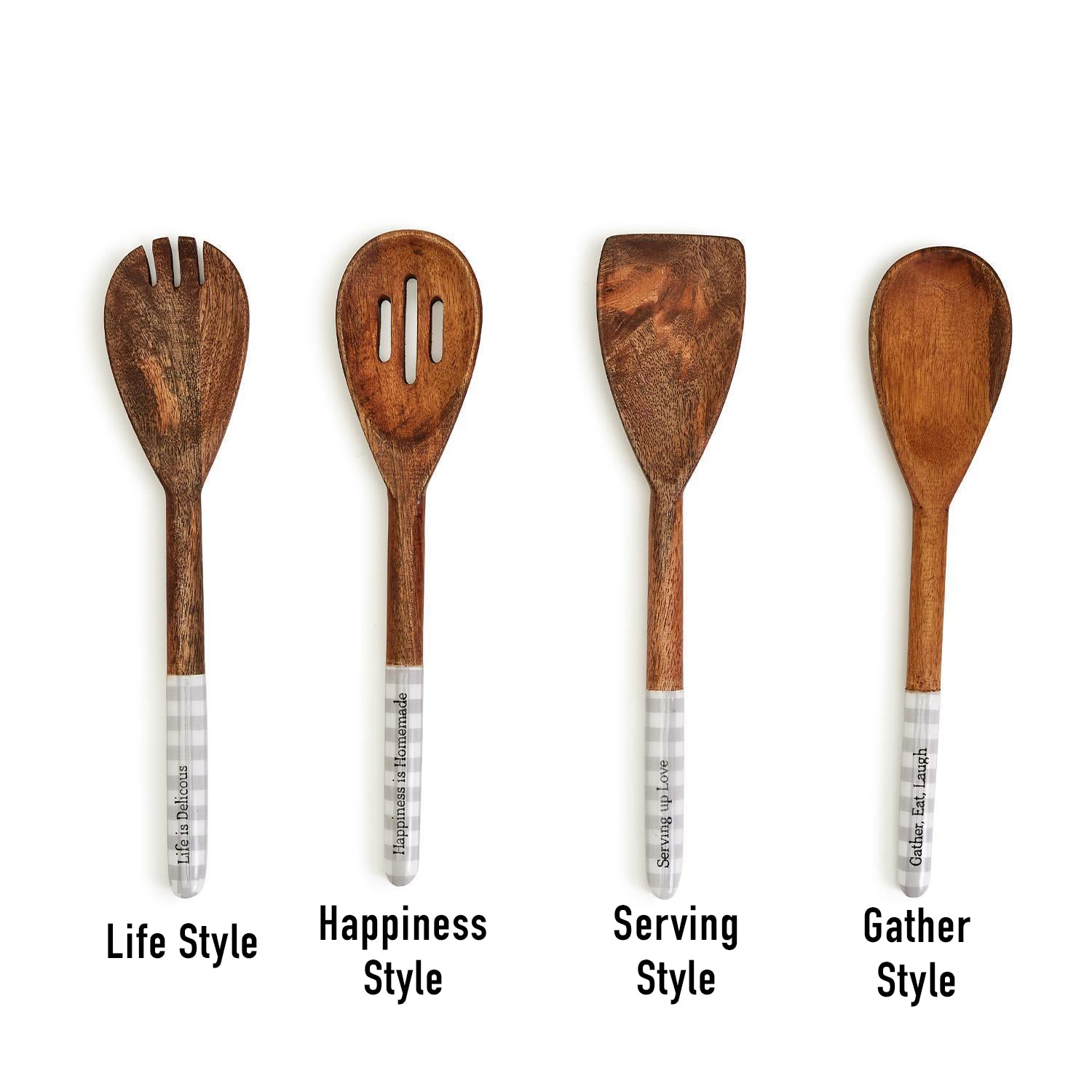 Life is Delicious Set of 4 Wooden Serving Spoons with Sayings. Opt to buy individually at a higher price point.